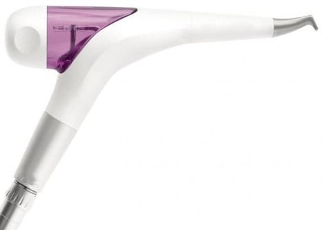 Questo è un dispositivo che viene utilizzato per eseguire l’igiene orale. La pistola, che si collega al riunito, sfrutta la sola potenza dell’aria per erogare un potente getto di acqua e polvere sulla superficie dentale. La funzione abrasiva servirà a pulire e a ottenere uno sbiancamento dentale.